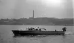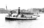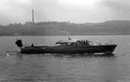 Fotodatum 13/7 1952. Fartyget passerar under Västerbron i Stockholm.