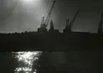 Ekensbergs varv 1969. Varvsarbetare i stora plåthallen på väg upp till övre våningsplanet