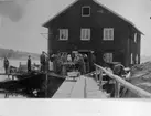 Medföljande text: "Arbetare vid Myrens Mekaniska Verkstad, Strömstad. Fr v Erik Antonsson, Erik Ljungqvist, Axel Winter, Arvid Jansson, Anders Andersson, Erik Nilsson, Anders Winter, Arne Antonsson, Bertil Forsberg, Frank Olsson, Allan Ljungqvist och okänd. Längst fram, mitt i bilden, skepparen på båten, Karl Hansson. Vid verkstaden byttes motor och däck på båten (bogserbåt). Längst bak i bild syns ett gammalt sillsalteri. Till höger i bild ligger Strömstads Lerkärlsfabrik (vid den tiden ej i drift). Bild tagen 1938. Originalfoto tillhörande Allan Ljungqvist, Strömstad".