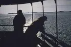 Ekensbergs varv 1969. Varvsarbetare i stora plåthallen på väg upp till övre våningsplanet
