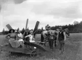 Skördearbete med självavläggare i Hovsta, 1920-tal
