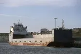 Transport av pappersbruket Papyrus PM2 yankeecylinder. Cylindern fraktas med båt i Göteborgs hamn, 2/6 1956.