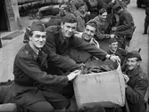 "600 värnpliktiga från I 8 deltar i skördearbetet", Uppsala 1946