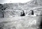 Skioptikonbild med motiv från stranden i båstad. Bilden har förvarats i kartong märkt: Höstresan 1907. Båstad 7. N: 1