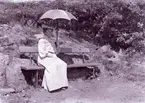Elna Brundins syster Hanna Olsson med solparasoll.