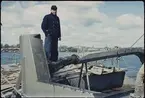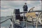 Fritid ombord, solning och tidningsläsning på däck på M/S NORDSTJERNAN.