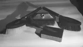 Bilden visar medlemar i Hagaby gymnastik- och idrottsförening som bygger ny klubbstuga. Rubrik till artikeln: Gammal butik blir Hagabys nya klubbstuga. Rubrik till negativbilderna: Hagaby gård Ismakare. 9 okt 1967.