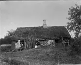 A T Gellerstedts akvareller, tillfällig utställning på Nordiska museet 7 april 2001. Akvarell från 21 maj 1886, "refs omkr 91".Humlegården vid nuvarande Runebergsplan. T h Spåkvinnan, mamsell Arfvidssons hus. Kvarnen revs för att ge plats åt Engelberktskyrkan.