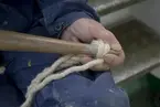 Oskarshamns varv. Karl Lönnkvist visar hur man Splitsar tågvirke. Se vidare 1969:136.