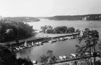 Från Hotellviken, Saltsjöbaden september 1946. Den damsegling som omtalas i baksidesanteckningen ägde rum 7 september. Anteckningen "Seglade för SSK eller Sthlms Starbåtsflottiljen" syftar på Bengt Melin, som var medlem av Stockholms Segel Klubb, hans hustru Inger seglade för Stockholms Segel Sällskap (KSSS årsbok 1947 s 222). I seglingsprotokollet anges fru Bengt Melins namn som Inga, men Melins svåger, tillika SSHM-medarbetaren Folke Sjödin, som gjort anteckningen, har uppgivit hennes namn som Inger. Jfr Fo157054 och -055 i KSSS-samlingen. Fotografiet återgivet i Till Rors årg. XII (1946) nr 37 s 11.
