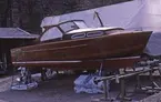 Fiskebåt för Ryssland klar för sjösättning 1950. Stöttorna hugges för nedläggning på bädden.