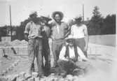 Stensättning av "Politiska hörnan" . Fr.v. S Wisén, polis Höjman o K Johansson "Pillertrillan" - jobbade på apoteket.