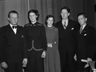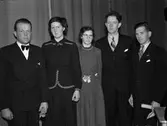 "Hushållningssällskapets vinterting i Upsala" - stipendiaterna lantbrukare Gunnar Wendin med hustru, "fru" och lantbrukare Ragnar Asp samt lantbrukare Rune Almgren, Uppsala slott, Uppsala december 1942