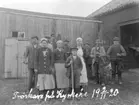 "Tröskare på Kyrkehe: Store Artur i Karlslund, Skylte Klara, Anna Bohlin från Ersmyrarna, Karl Otto, fosterbarn, Skebräcke, Skylte Emma, Karl Hansson i Skistad, John Karlsson i Liveröd, Karl Norderby, Johannes A. 2/11 1920."