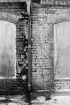 Takfot och stupränna på bostadshuset Tjädern 2, inför rivning. Vy från söder, 1998-05-29.