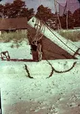 Ålbottengarnsfiske. Ålen töms i sumpen.