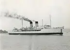 Tågångfärjan DROTTNING VICTORIA av Trelleborg i Trelleborgs hamn. På redden tyska ångfärjan DEUTSCHLAND.