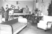 Tapetserare, skomakare och keramiker i en s k arbetande verkstad i föreningens representationsrum under Upsala Fabriks- och handtverksförenings utställning, Nedre Slottsgatan 6