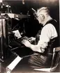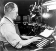 "Typograf Gustaf Alpstedt vid sättmaskinen" (Falköpings tidning). Från utställningen "Falköping i bild" 1952.