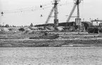 TIMMERBOGSERING PÅ KANALEN. DRAGEKIPAGET KÖRS PÅ KANALBANKEN.