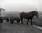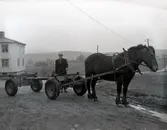 Enligt senare noteringar: "Timmerkörare med häst och vagn utanför Oscar Färdigs hus." (BJ)