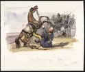 "Sakta Titus! Var lugn!" Lindhamn juni 1848. En officer som kastats ur sadeln försöker lugna sin stegrande häst. Akvarell av Fritz von Dardel.