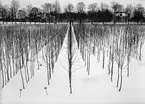 "Tusentals träd i täta rader i plantskolans område mellan Kronåsen och Flusterpromenaden"