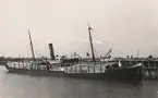 Från fotobeskrivning: "Lastångfartyget MOLDAVIA vid Hull i augusti år 1912 med trälast [---] Fartyget gick bl.a. till Vita Havet, Arkangelsk och London. Signal: JMKG Reg.nr: 3927" [---]