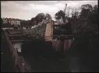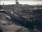 Vasa uppstöttad med trästöttor i Gustav V:s docka på Beckholmen.