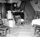 Kammare i bonden Karl Nilssons hem i Göttorp, Östergötland. Golvet helt täckt med trasmattor.