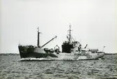 Materiel för ubåtsbärgning på Belos. Lucka till ubåtsklocka tas ombord på fartyget.