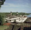 Furusunds slip Foto i svartvitt visande Furusunds slip, Högmarsö, omkring 1963, med från vänster Waxholm III, Östanå I och Sunnan (Ex Albrektsund), ägda av Waxholms Nya Ångfartygs AB