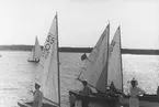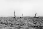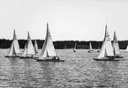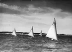 Från starbåtarnas uttagningsseglingar i Sandhamn 21 juni 1936 till OS-seglingarna i Kiel i augusti. Svenska Seglarförbundet hade uppdragit arrangemanget av dessa uttagningsseglingar åt KSSS. De båtar som kan identifieras på bilden är Daniel Sundén-Cullbergs 915 SUNSHINE i förgrunden t v samt Dag Sundén-Cullbergs 1014 MOONSHINE längst t h
