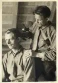"Västersjön, Inre tjänst efter övningarna." Hårklippning på gång.