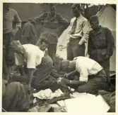 "Västersjön, Inre tjänst efter övningarna." Omplåstring av diverse fotskador, bl a skavsår.