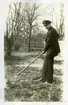 EN MAN PLÖJER MED HJÄLP AV TVÅ HÄSTAR.