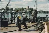 En tjärbark där fiskare färgade sina garn. Wire på tjärbark vid tjärgryta.