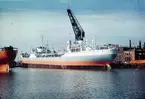 S/S Mariefred vid kaj efter branden i maj 1994. Beckholmen, Stockholm