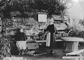 Kolorerad skioptikonbild med motiv av sällskap vid vattenkälla.
