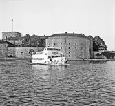 Fartyget i Fästningssundet, skall anlöpa Vaxholm 1956-08-18. Identiskt fotografi i C, G. Jacksons samling Fo109108AB