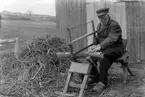 "Vedsågning. Johan Johanssons hem. Johannes A."