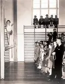 "Flicka på bom". Från Läroverkets gymnastikuppvisning. Från utställningen "Falköping i bild" 1952.