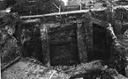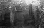 Nedre bordläggningen och v-formade bottenstockar på Vrak 12.