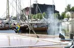 Tre seklers flaggskepp, maj 2008. Båt in bio i Wasahamnen, visar "Pirates of the Carribean"