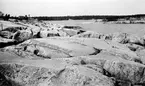 Vy över stuga på Simpnäs tillhörande Volrat Ulfwi. Bilden tagen från folkbåten KARP.
