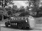 Plattformsvagn "Ruthman", plattformstruck SJ 565, småbehållare B21414 Höj- och sänkbart flak, lyftkapacitet 1,5 ton.