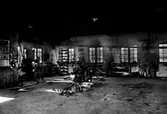 Verkstaden låg i korsningen nuvarande Österleden, Bergåsavägen. Fr.v. Eric Ottosson, Karl Henry Kjellgren o. Carl Gunnar Johansson.