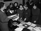 Disa Westerlund bjuder husmödrarna att smaka på Uppsala stads bär- och fruktkommittés konserveringskurs, Blåbandsföreningens lokal, Kungsgatan