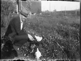 Olga, född Olsson, Forshälla 1891-05-12, som är höggravid, matar höns.