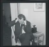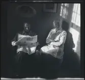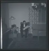 513 B Red. Karlströmer. I hemmet. En man och en kvinna ses sittandes i ett rum, sett genom dörröppningen.